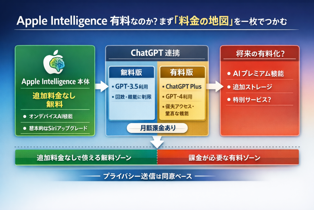 Apple Intelligence 有料なのか?まず「料金の地図」を一枚でつかむ