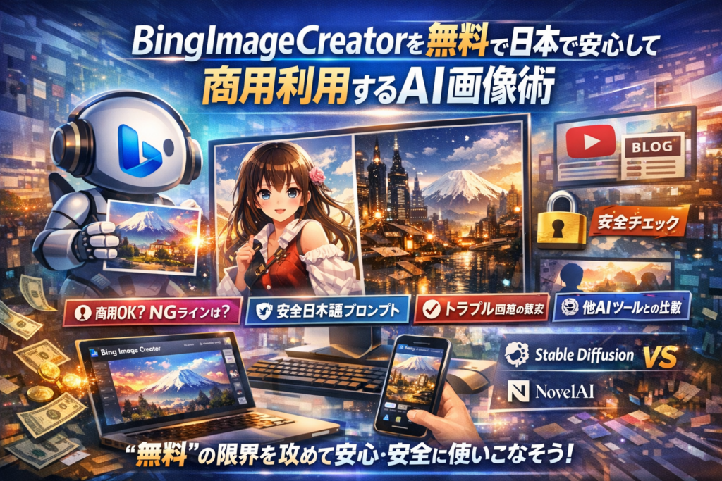 この記事では、Bing Image Creatorを日本で無料活用するうえで、どこまでが実務上セーフかを用途別・立場別に整理します。パソコンやスマホ、CopilotアプリやEdge Image Creatorからの最短の使い方、日本語プロンプトの具体例、美少女やアニメ系の表現で避けるべき境界線、ビデオやLPでの使いどころ、ログインやダウンロード、履歴削除といったトラブル対応まで一気に俯瞰できます。さらにStable DiffusionやNovelAI、Midjourneyとの比較から、どのツールをどの工程に置くと成果とリスクのバランスが最も良くなるかを示します。無料だからこそ、どこまで攻めてどこで止めるかを決めておくことが、手元に残る売上と信用を守る近道です。
