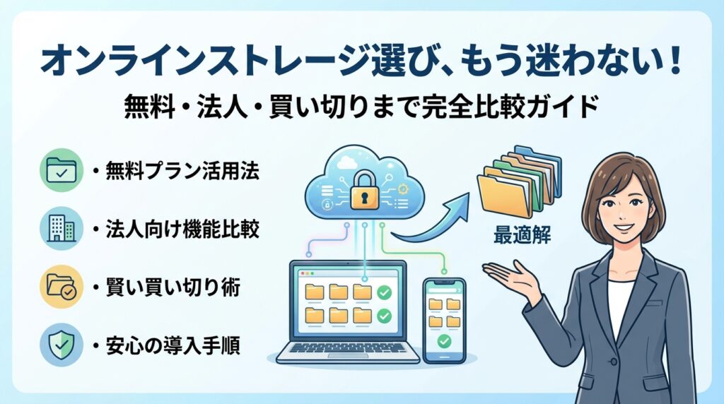 本記事では、GoogleドライブやDropbox、OneDrive、Boxなどの定番から、pCloudのような買い切りクラウドストレージ、国産の法人向けオンラインストレージまでを一つの地図に載せ、「個人」「フリーランス」「中小企業」で取るべき現実的な選択肢だけを抽出します。無料でどこまで攻めて、どこから有料や企業向けに切り替えるべきかを、容量や料金の比較だけでなく、フォルダ構成、共有リンク、退職者アカウントといった運用の詰みポイントまで踏まえて整理します。