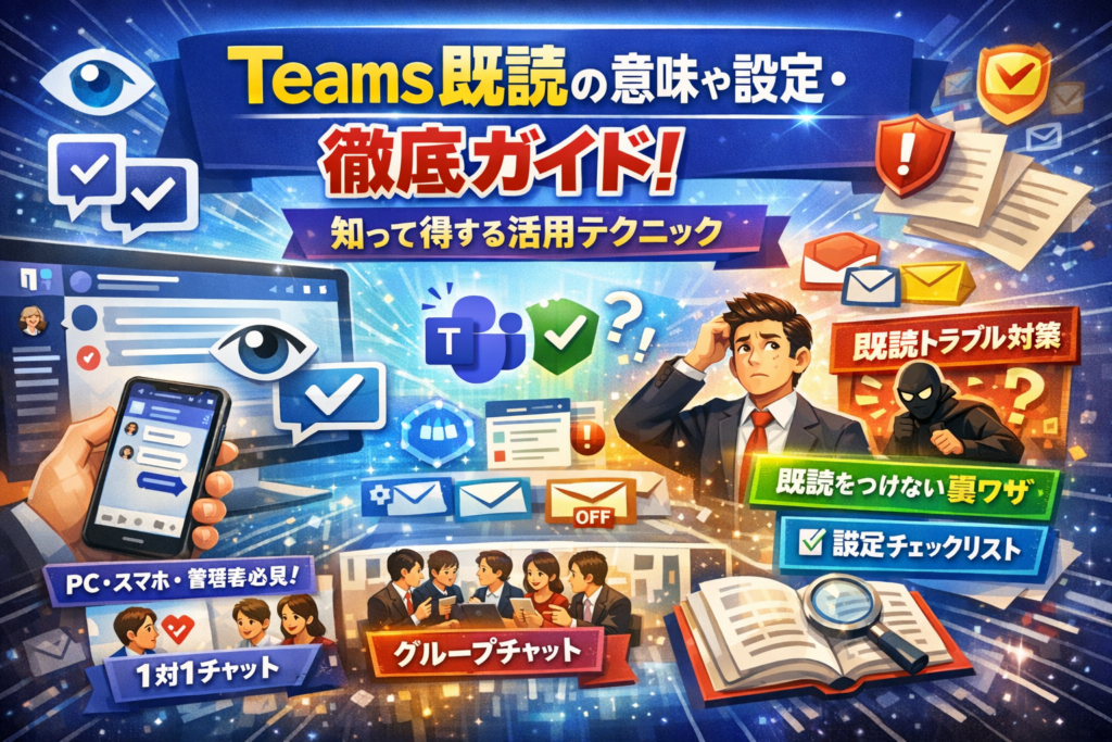 本記事では、Teams既読の意味と仕様を完全図解し、既読確認の方法と設定、既読にならない・既読マークなくなったときの原因切り分け、そして「既読つけない方法」の現実的なラインまでを一気通貫で整理します。単に読み取りレシートのオンオフ手順をなぞるのではなく、1対1チャットや20人以上のグループチャット、チャネルでの既読確認の違いを比較し、「誰が・どこで・何を設定すればいいか」が一目で分かるようにします。