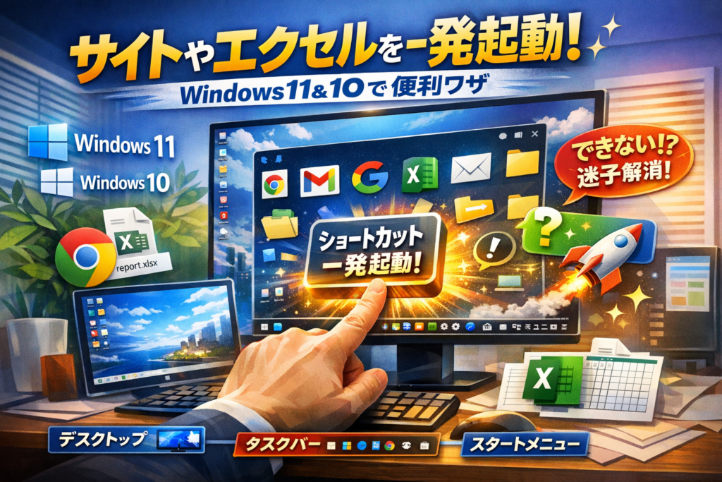 パソコンのホーム画面に追加でサイトやエクセルを一発起動!Windows11や10でも便利に使える方法