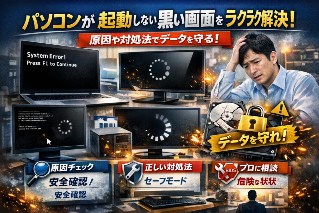 パソコンが起動しない黒い画面をラクラク解決!原因や対処法で大切なデータも守れる方法