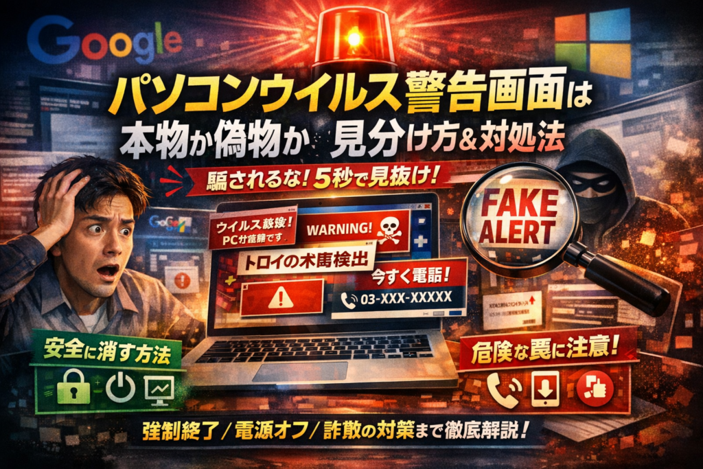 パソコンウイルス感染警告画面は本物か偽物なのか見分け方と安全に消すためのガイド