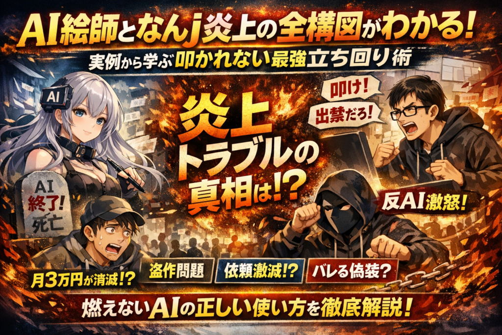 本記事では、なんjで燃えがちな行動パターンからコミケ出禁論までを、依頼者目線と描き手目線の両方から分解し、叩かれないAIの使い方と、AIに仕事を奪われない立ち回り方を具体的に言語化します。AI絵師を名乗るか迷っている人も、反AIを掲げている人も、「何をすると本当に損をするのか」が数十分で整理できます。