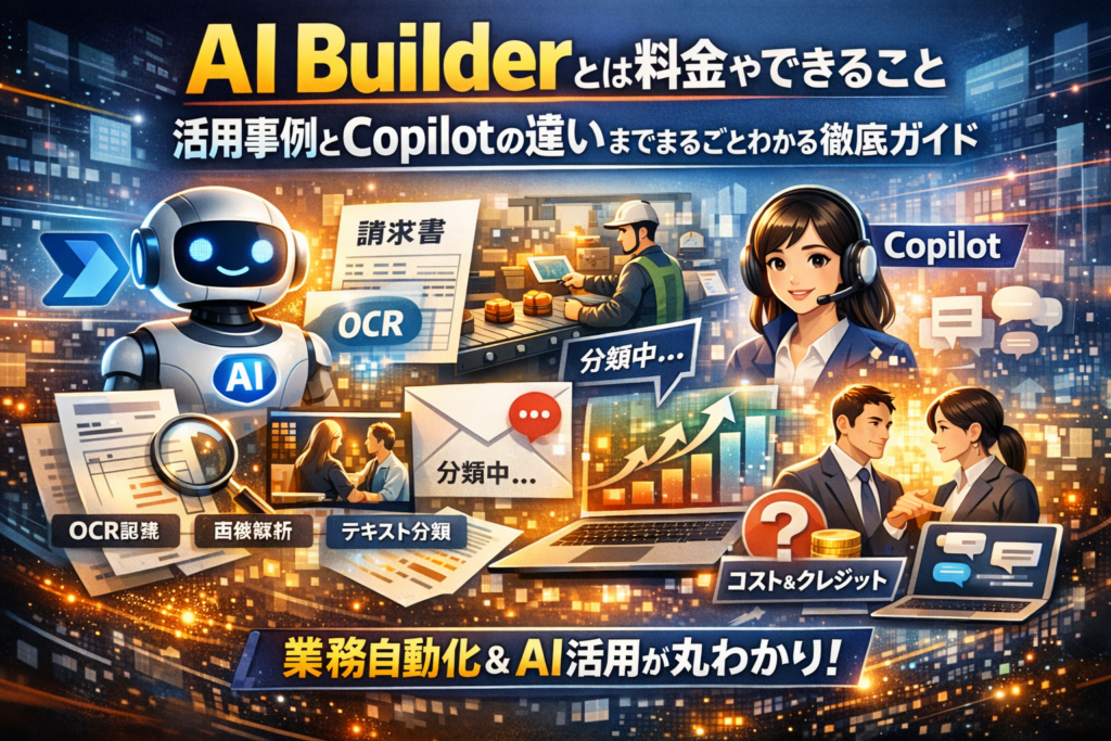 本記事は、AIビルダーとは何かという定義から、AI Builderできることと具体業務への落とし込み、AI Builder料金とクレジットの仕組み、無料や試用版でどこまで検証すべきかを一気通貫で整理します。さらに、テキスト認識やテキスト分類、画像認識などのカスタムモデルを、経理・営業・カスタマーサポート・製造の現場にどう差し込めば「やってよかった」と言われるか、現場で繰り返されている失敗事例とともに示します。