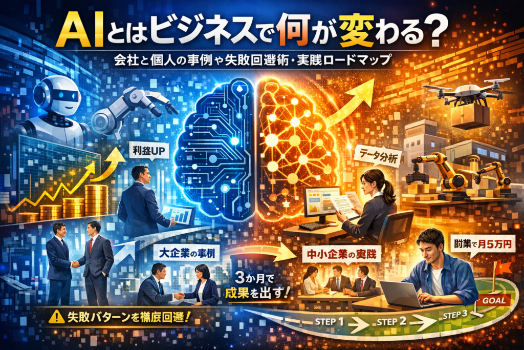 AIとはビジネスで何を指し、会社や個人の「手元に残る成果」をどこまで変えられるのか。この問いをあいまいなままにしておくと、ツール選定やPoCに時間と予算を割いても、現場の負担だけ増えて終わります。本記事は、AIとはビジネス用語としてのAction Itemと、ビジネス人工知能としてのAI活用を一枚の地図に整理し、「どこから着手すれば利益に直結するか」を具体的に示します。