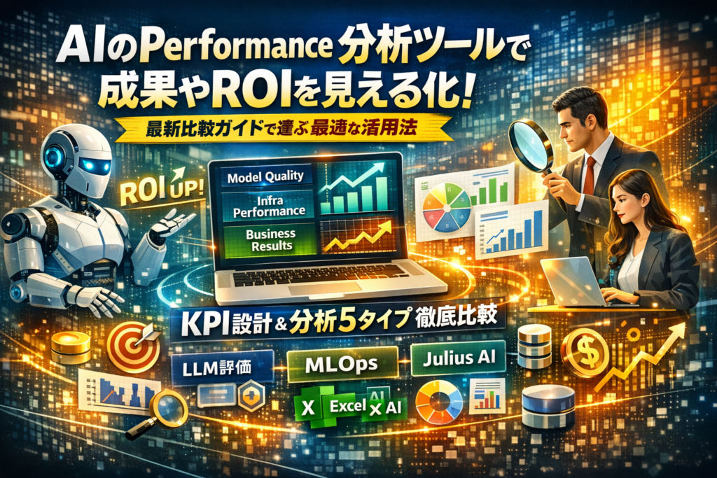 本記事では、AIのパフォーマンスを「モデル品質」「インフラ性能」「ビジネス成果」の三層で定義し直し、AIデータ分析ツールとAI Performance分析ツールの違いを明確にしたうえで、何をどう測るかのKPI設計から整理します。そのうえで、LLM評価・MLOps・BI連携型・対話型・業務特化型という5タイプの分析ツールを比較し、Excel×AIや無料のAIデータ分析ツール構成、Julius AIやPowerdrill AIへ進むタイミングまで、実務で使える判断軸を提示します。