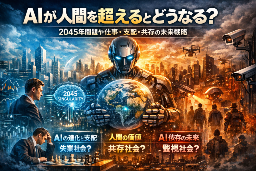 本記事は、AIが人間を超える年はいつかという予測やAI脅威論の一般論ではなく、すでにAIが人間を超えた事例、現場で起きた導入トラブル、人間がAIに勝てないものと勝てるものの境界線を、一次情報ベースで整理します。そのうえで、失業社会か共存社会かという三大シナリオを比較し、「AIが人間を超えることはない理由」と「依存しすぎた時に起こる支配感」の両方を冷静に分解します。