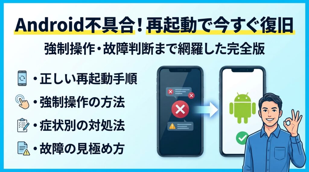 特に、Androidの再起動トラブルは「電源」「起動」「ログイン」「サポート窓口」が一気に絡みます。