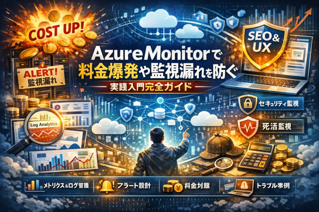 経営者として、年商規模が変わる局面をいくつも乗り越える中で痛感したのは「監視設計を売上とSEO、ユーザー体験と同じテーブルで語れないと、必ずどこかで損をする」ということです。本記事では、Azure Monitorの構成要素や料金ポイントを整理しつつ、中小〜中堅企業が現実的なコストで“売上を守る監視”にたどり着くための視点をまとめました。インフラ担当だけに任せず、マーケティングや経営の意思決定にも使える形でAzure Monitorを活かしてほしいという思いから執筆しています。