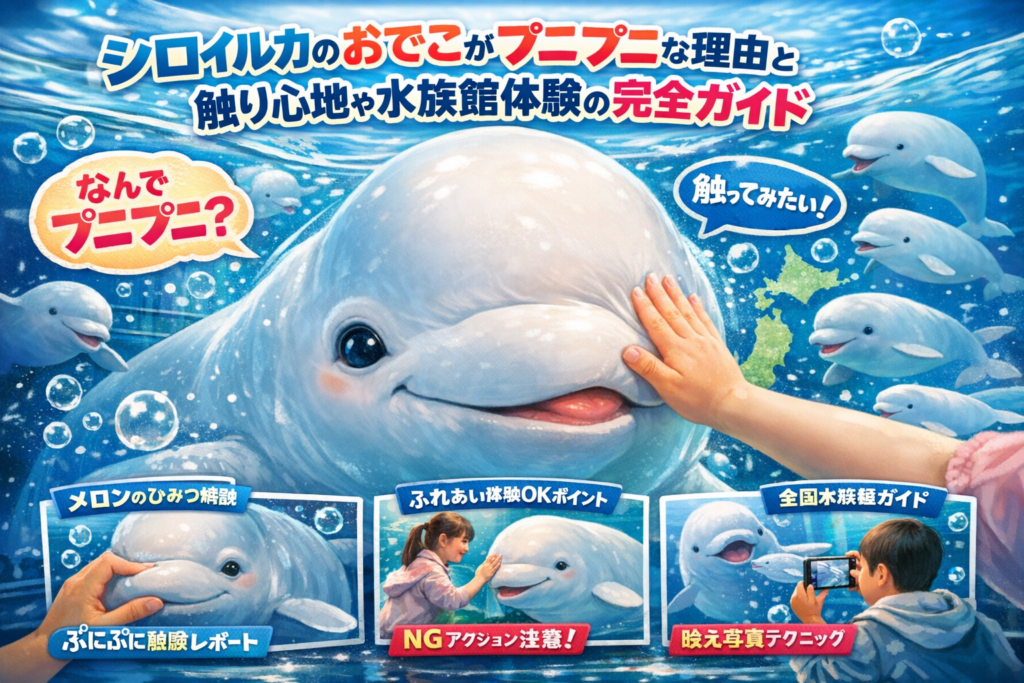 この記事では、まずSNSでバズるプニプニ動画の「かわいい」瞬間を押さえつつ、おでこの中身や出っ張りの理由、他のイルカとの違いをやさしく整理します。そのうえで、「水の入った冷たいボール」と表現されるリアルな触り心地、押しても痛くないのかという不安、やりがちなNG行動まで具体的に解消します。さらに、全国でシロイルカのプニプニ体験が狙える水族館情報、混雑や整理券の落とし穴、親子で楽しめる観察ポイントやクイズ、映える写真の撮り方までを一つに集約しました。検索とおでかけをつなぐ設計まで知っておくことで、「なんとなく調べて終わり」という小さな損失を、週末の濃い体験と子どもの学びに変えられます。