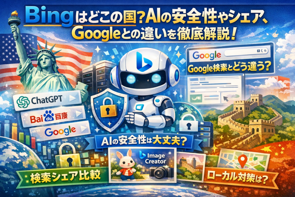 このページでは、Bingはどこの国のサービスかという答えを最初に明示したうえで、検索エンジンとしてのBingとBingAI、画像生成、さらにはビングというイギリス発アニメやANINE BINGというブランドまでを一気に整理します。世界と日本の検索シェアの中でのBingの立ち位置、中国でのBaiduやSogouとの違い、Googleとの検索結果やAIチャットの差、ローカル検索での実務的な影響までを、ビジネスに直結する視点でまとめています。