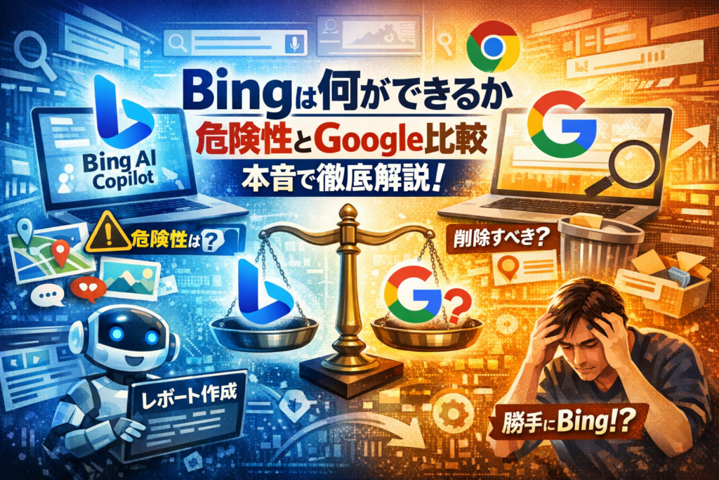 「気づいたら検索がBingになっていたけれど、正直いらない。危険性も気持ち悪さもはっきりさせて、消すかどうか決めたい」多くの人がこの段階で止まり、Bing AIやCopilotが実務でどこまで使えるかを検証しないまま、なんとなくGoogleだけを使い続けています。この迷いが、便利さもリスク回避も中途半端にしている本当の理由です。