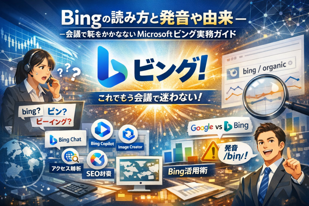 本記事では、Bingの読み方とイントネーション、英語との発音差、Bing ChatやBing Copilot、Bing Image Creatorなど周辺サービス名まで一気に整理します。そのうえで、検索エンジンとしての位置付けやGoogleとの違い、Bing検索やBing画像検索を前提にしたアクセス解析・資料作成の実務ルールを示します。さらに「Bingはいらない」「危険性が心配」「WindowsやEdgeから削除しても大丈夫か」といった再検索ワードに、現場のWebマーケ視点で答えます。読み終えるころには、Bingという単語が社内で迷いなく共有され、検索データを武器として扱える状態まで一気に持っていきます。