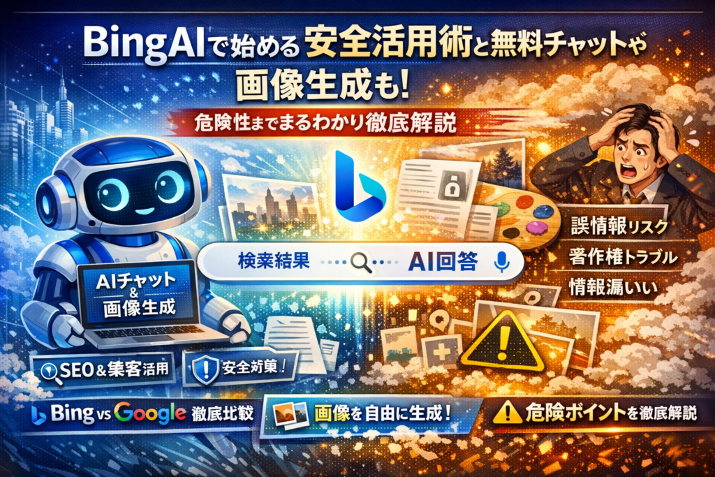このような背景から、「Bing AIとは何か」を整理するだけでなく、Windows・Edge・Chrome・スマホでの具体的な始め方、検索とチャットの使い分け、画像生成の安全ライン、そしてGoogleとどう組み合わせれば集客の成果につながるのかを、現場で本当に使えるレベルまで落とし込んでお伝えしたいと考え、本記事を書いています。