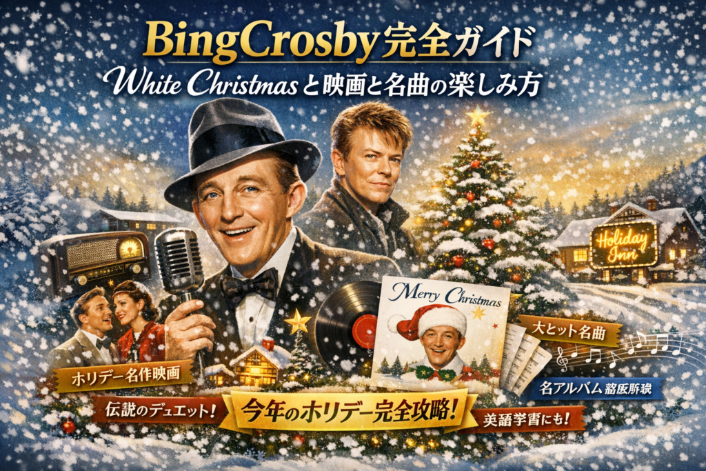 このガイドでは、Bing Crosbyをクリスマスソングの王様かつラジオとテープ録音時代のスターとして短時間で把握し、White Christmas、アルバム「Merry Christmas」、映画「Holiday Inn」「ホワイトクリスマス」、そしてDavid Bowieとの共演「Peace on Earth/Little Drummer Boy」という4本柱を、実務的に使いこなす前提まで一気に整えます。