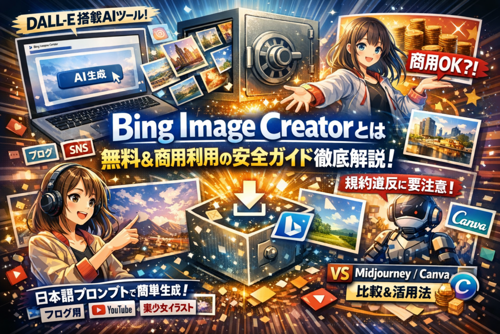 あなたのブログやYouTube、SNSに載せる画像を「何となく無料素材で済ませている」なら、その時点でクリック率と信頼を静かに失っています。Bing Image Creatorとは、Microsoftが提供するDALL‑Eベースの画像生成AIツールで、日本語プロンプトを入力するだけで数秒で画像を作成でき、ブーストによって無料でも高速生成が可能です。ただし、商用利用や著作権、安全性のラインを誤解したまま使うと、炎上や規約違反で逆効果になりかねません。この記事では、ブラウザやCopilot、スマホアプリからのアクセス方法やMicrosoftアカウントでのログイン手順、画像のダウンロードまでの具体的な使い方に加え、ブログ用・YouTubeサムネ用・美少女イラスト用など用途別の日本語プロンプト術、ブーストや無料制限の実態、利用規約上の商用利用の境界線を整理します。さらに、MidjourneyやCanvaなど他の画像生成AIとの比較や、AI画像の使いすぎでブランドが霞む失敗パターンまで押さえ、Bing Image Creatorを「安全に成果へつなげる」ための実務的な判断基準を提示します。