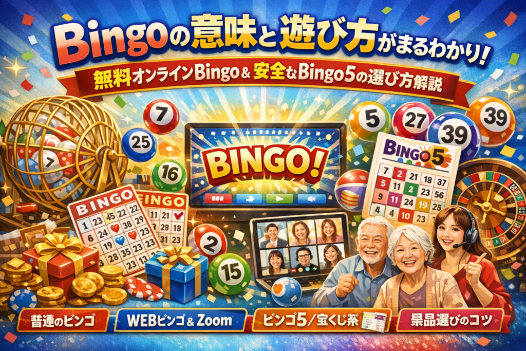 本記事では、まずビンゴとは何かを整理し、BINGOの意味やリーチとの違い、ビンゴカードと抽選の基本ルールを押さえたうえで、普通のビンゴゲーム、無料WEBビンゴ、ビンゴアプリ、ビンゴルーレット、Zoomビンゴまでを一つの実務ロジックで並べ直します。さらに、ビンゴ5やbingo 539など宝くじ系との決定的な違いと安全な付き合い方、高齢者や家族でプレイする際の注意点、景品と集客をセットにしたイベント設計まで、幹事や店舗オーナーが「すぐ使える」レベルまで具体化しました。ここまで横断して整理された情報は検索結果には存在しません。ビンゴで失敗できない立場なら、このまま読み進めた数十分がそのまま当日の安心と盛り上がりに変わります。