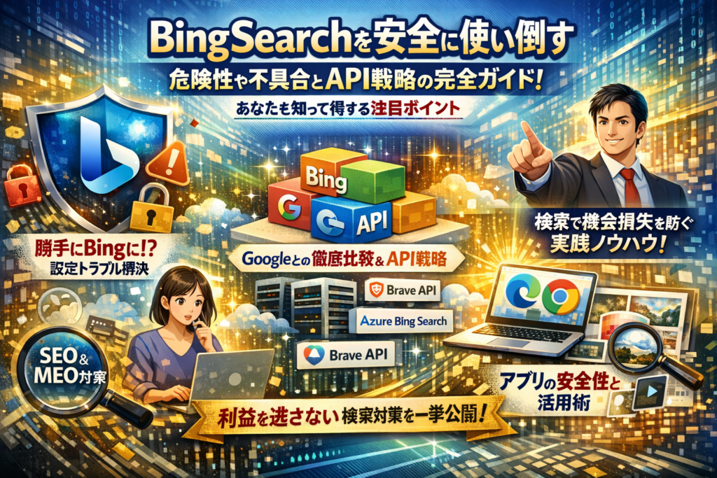 本記事では、Bing SearchとMicrosoft Bingの正体と危険性、Googleとの違い、Windows11やEdge、Chromeでの設定トラブル、Bing画像検索とGoogle画像検索の使い分けまでを一気通貫で整理します。そのうえで、Azure Bing SearchやBing Search v7、Brave Search APIを含むAPI戦略を、経営判断と開発実装の両面から具体的に示します。Bingアプリの安全性やアンインストール可否も含めて、一般ユーザー、Web担当者、開発者それぞれが、検索に振り回されず結果を出すための実務ロジックだけを凝縮しました。ここで整理しておけば、「検索まわり」で迷う時間がそのまま利益と安心に変わります。