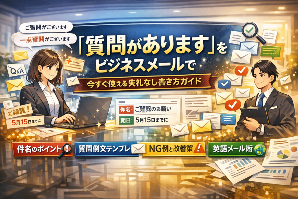 この記事では「質問があります」「ご質問がございます」「一点質問がございます」の敬語レベルと使い分けから、上司や取引先への質問メール例文、件名の作り方、複数質問の整理術、回答メールとお礼メールまで、ビジネスメールの往復を丸ごとテンプレ化します。さらに、問い合わせ対応の現場で本当に困るメールの失敗パターンと、その書き換え例も示します。