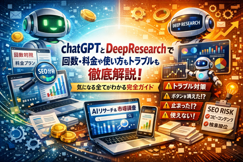 Deep Researchを「便利なおもちゃ」で終わらせず、「社内のリサーチ担当」として使いこなしてもらうこと。そのために、料金・回数・トラブル・SEOリスクまでを一気に俯瞰できるガイドが必要だと考え、この記事を書きました。