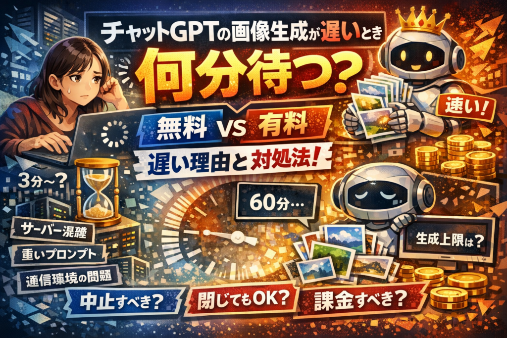 チャットgptの画像生成が遅いとき何分待つ?無料と有料の限界と対処法をわかりやすく解説