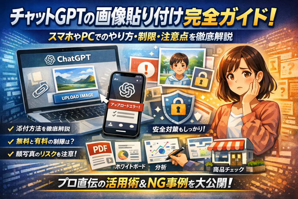 本記事は、単なる「やり方の紹介」ではありません。PCとスマホ別にチャットgptの画像貼り付け手順を具体的な画面操作レベルで分解し、「画像貼り付けできない」時にまず疑うべき原因、「何枚まで」「何回まで」使えるかという制限の現実的なラインを、無料版と有料版に分けて整理します。そのうえで、チャットGPTに写真を送る危険、顔写真や学校・職場が写った画像を出すときの判断軸、「送ってしまった後」に取るべき対応まで踏み込みます。
