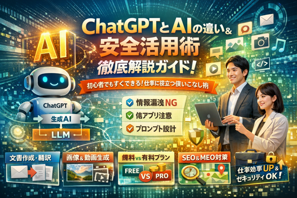 あわせて、日本語版の安全な始め方や本物アプリの見分け方、プロンプト設計術、入力してはいけない情報リスト、社内ガイドラインの作り方、そしてAI時代のSEO・MEO・AIO戦略までを一気通貫で扱います。単なるツール紹介ではなく、「どの業務をどうChatGPTに渡せば、現場の負荷を減らしつつ成果と安全性を両立できるか」を具体的に掴みたい方は、このまま読み進めてください。