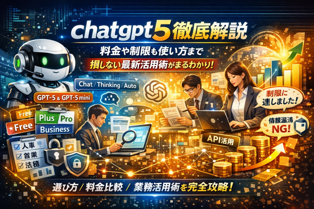 本記事では、chatgpt5の世代とモード構成(Chat/Thinking/Auto)、GPT5 miniやProの性能差と業務適合、無料プランとPlus・Pro・Businessの料金と制限の決定的な違いを、実務で判断できるレベルまで整理します。さらに、「いつからどこでログインし、どの公式アプリを選ぶか」「長文やマルチモーダルをどの業務に当てると最も効率が上がるか」「制限に達しました」「改悪・不評」と感じる原因と対策、情報漏洩を防ぐ社内ルールの設計まで一気に解説します。