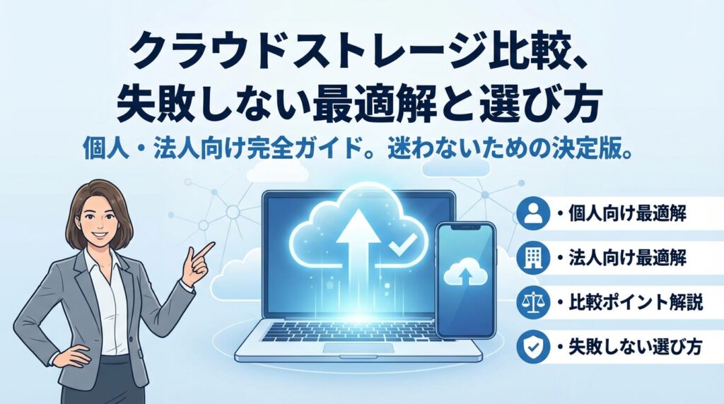 本記事は、クラウドストレージ比較のランキングや料金表をなぞるものではありません。個人と法人で本当に見るべきポイントはどこか、クラウドとNASのどちらが現場に合うのか、無料・有料・買い切り・容量無制限のどれで手残りが最大化するのかを、実務で起きた失敗事例とともに整理します。GoogleドライブやOneDrive、Dropbox、iCloud、Boxなど定番サービスを比較表で俯瞰しつつ、「オンラインストレージ最強」ではなく「あなたにとっての最適解」を用途別に言語化します。