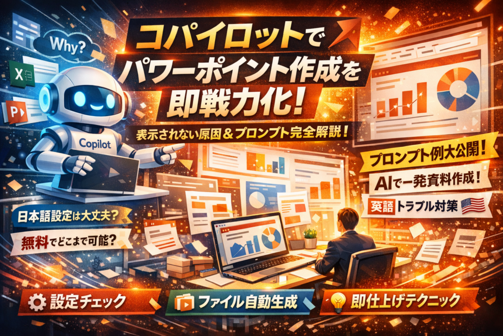 この記事を読み進めれば、Copilotを「よく分からないAIサービス」から「パワーポイント資料を短時間で仕上げる即戦力」に変えるための具体的な作成フローとプロンプト設計が、そのまま自分のPCで再現できるようになります。