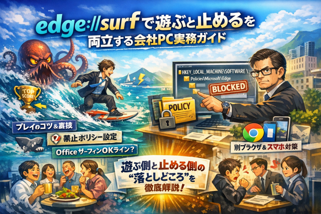 業務PC・学校PCの世界では、edge://surf禁止をただポリシーで封じると、ユーザーはChromeやWeb版サーフィンゲーム(rbeesley版など)へ逃げるだけ、というパターンが珍しくない。
