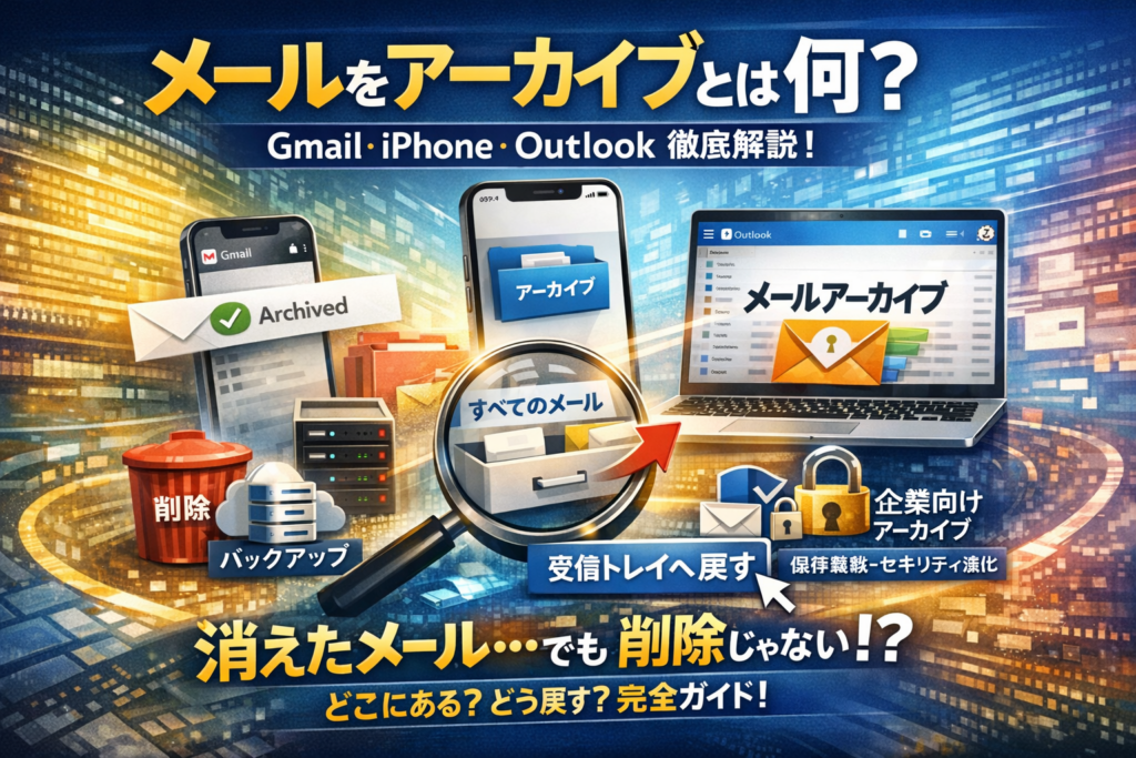 本記事では、GmailやiPhoneメール、Outlookごとに「アーカイブしたメールはどこ」「どう戻す」「どこに保存されるのか」を、実際の画面操作レベルで整理します。そのうえで、企業向けのメールアーカイブサービスとは何か、バックアップやOffice365のオンラインアーカイブとの違い、保存義務やコンプライアンス対応までを一気に解説します。読み終える頃には、受信トレイをタスクボードとして運用し、クレームや対応漏れを防ぎつつ、メールセキュリティも強化できる実務的な整理術が手元に残ります。
