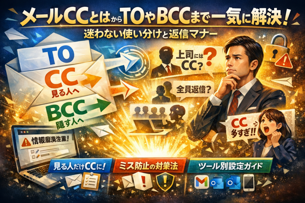 本記事では、メールCCとは何かをTOやBCCとの違いから一気に整理し、誰を宛先にし誰をCCに入れるかを迷わず決める基準を提示します。さらに、メール返信でCCを外すかどうかの判断軸、上司をCCに入れるビジネスマナー、GmailやOutlookやiPhoneメールでの具体的な設定方法までを、現場の失敗例とともに解説します。