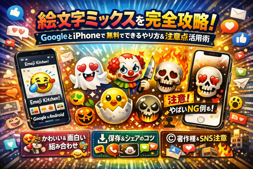 本記事では、Emoji Kitchenを使ったGoogle版の絵文字ミックスのやり方から、AndroidのGboard設定、iPhoneで絵文字ミックスを無料で使う裏ワザ、絵文字ミックスゲームやサイトの安全な選び方までを最短手順で整理します。さらに、絵文字ミックス一覧レベルでは拾えない「面白い・かわいい・怖い・やばい」組み合わせの使い分け、保存と共有のコツ、著作権のグレーゾーン、企業SNSでのトンマナ崩壊を防ぐ実務ロジックまで一気に踏み込みます。