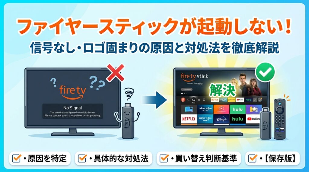 ファイヤースティックが急に起動しない、テレビに「信号がありません」と出たまま映らない、Fire TVのロゴから進まない。この数分の停止が、そのまま家族の視聴時間とあなたの時間を削っています。多くの人は「とりあえず再起動」や「買い替えかも」と感覚で動きますが、そこで判断を誤ると、まだ使えるFire TV Stick本体やテレビ、リモコン、HDMIケーブルまでまとめてムダにしてしまいます。