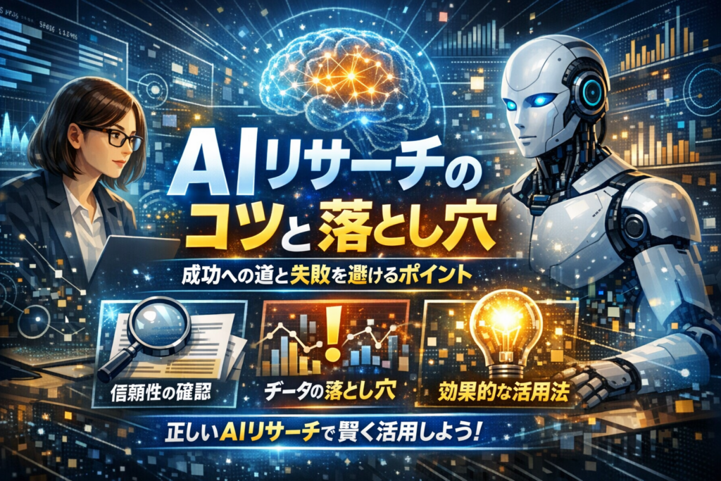 | 調査 | キーワード収集、一次情報の候補出し、検索結果の要約 | 情報の取捨選択、業界固有の解釈、最終的な結論づくり |