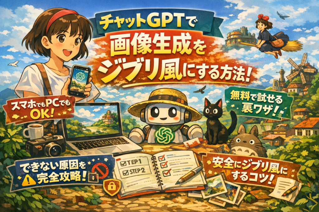 ポイントは「テクニック以前に、仕様と制限を知ること」です。どのプランなら画像生成できるのか、なぜ「ジブリ風にして」と書くだけでは似ないのか、なぜ友だちはOKなのに自分の環境だけエラーになるのか。現場で実際に多発しているパターンを前提に、プロンプトの具体例とチェックリストを用意しました。