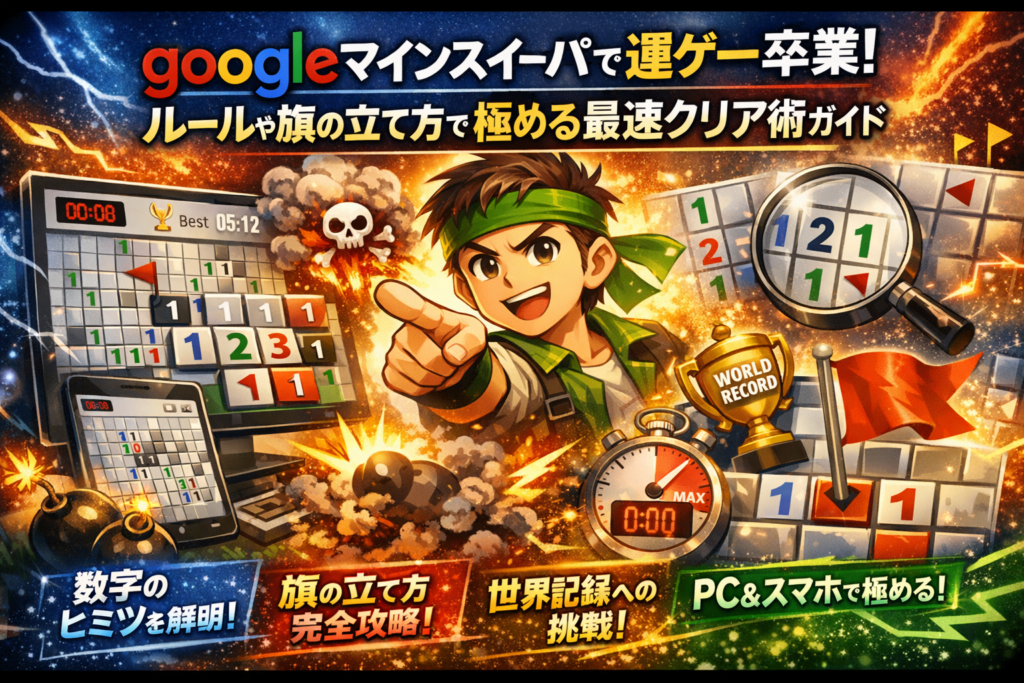 googleマインスイーパを開いて「ルールが曖昧なまま爆発して終わる」「旗の立て方が分からない」「運ゲーでしょ」と感じているなら、そのまま閉じるのは損です。数字の意味と最低限のやり方、PCやスマホ・タブレットごとの操作、旗の立て方と使いどころさえ押さえれば、この無料のグーグルゲームは一気に「論理で攻めるパズル」に変わります。