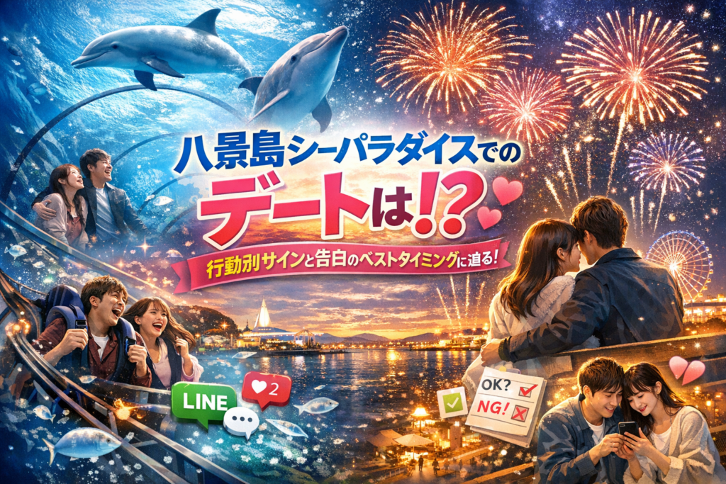 この記事では、八景島シーパラダイスという具体的なデートスポットを前提に、アクアミュージアムやプレジャーランド、花火シンフォニアなどシーン別に「本物の脈ありサイン」と「勘違いしやすい行動」を切り分けます。さらに、半日デートと一日デートの違い、二回目三回目の約束の意味、告白すべきでないタイミング、デート後のLINEの中身まで、恋愛の現場で迷いやすいポイントを行動レベルで分解します。