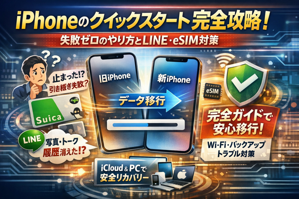 機種変更を「ケーブル1本よりラク」にしてくれるのがクイックスタートですが、使い方を誤るとLINEやSuica、仕事用メールまでまとめて詰まる“地獄スイッチ”にもなります。ここでは、最初の5分で押さえるべき全体像と落とし穴を整理します。