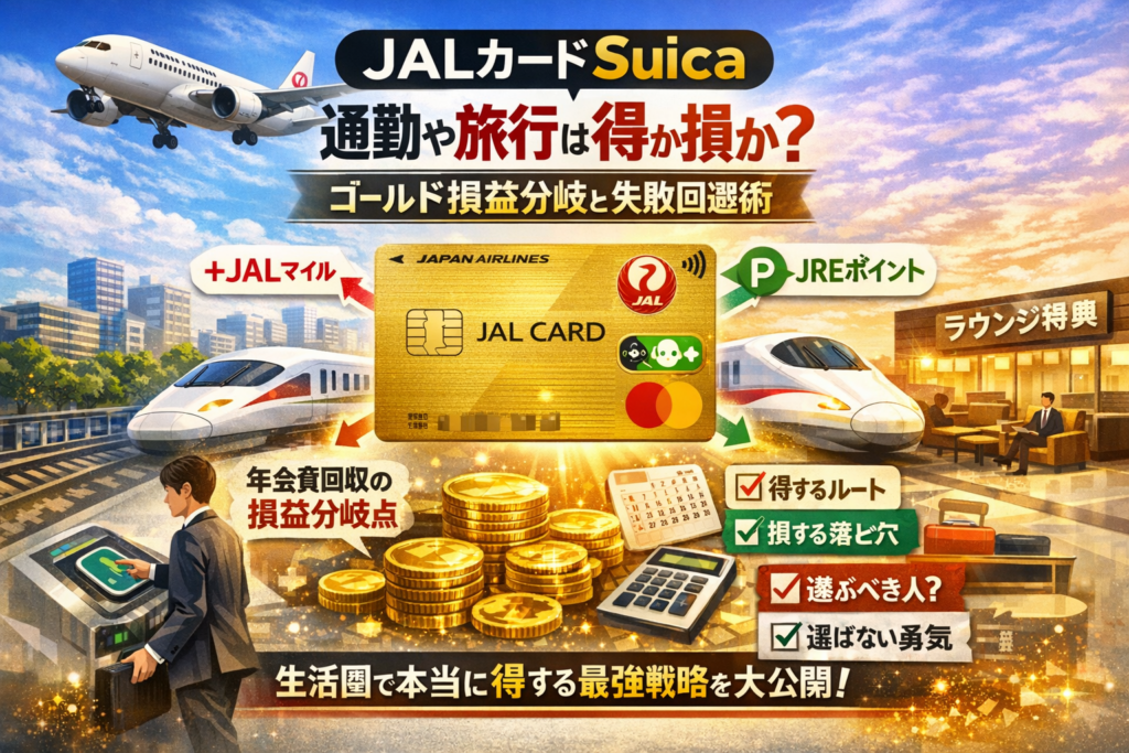 本記事では、普通・CLUB-A・CLUB-Aゴールドの損益分岐点を通勤額とJAL搭乗回数から具体的に区切り、Suicaチャージや定期券、モバイルSuicaでどこまで還元率を高められるかを実務目線で整理します。そのうえで、JREカードや他のJALカードとの比較、JGCやラウンジ狙いの現実的な組み合わせ、「あえてJALカードSuicaを選ばない方が得な人」の条件まで踏み込みます。ネットの「最強」「おすすめ」という曖昧な評価ではなく、あなたの利用額と生活圏で見たときに、どのグレードが得か損かが一目で判断できる構成にしているため、読み進めないこと自体が機会損失になります。