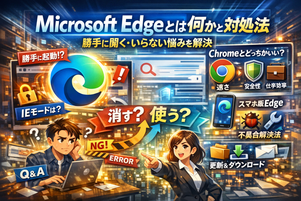 Windows Edgeとはどんな役割のブラウザなのか、Internet Explorerとは何が違うのか、chromium edgeとは何かという前提から、「Microsoft Edge 勝手に開く・応答なし・開かない・うざい」といった現場トラブルを、プロがどう切り分けて対処しているかまでを一気に整理します。