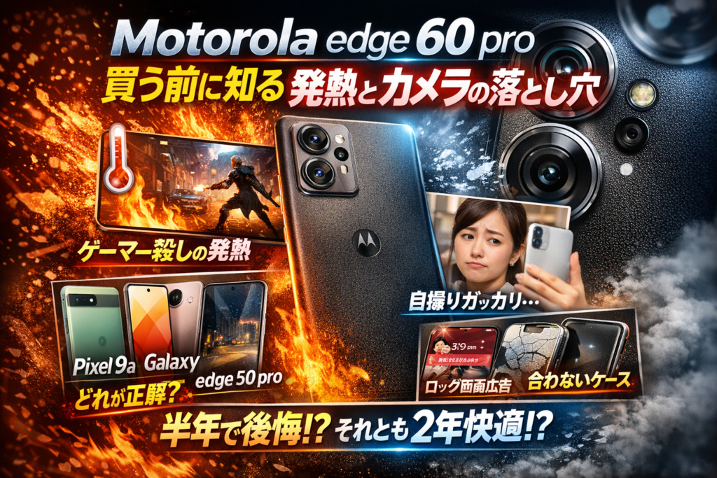 motorola edge 60 proは、「条件が合う人にはPixel 9aより満足度が高いが、合わない人には半年で手放したくなる」かなり極端な一台です。スペック表や公式のカメラレビューだけを信じて決めると、発熱・自撮り・アップデート保証・ロック画面広告・ケース選びで想定外のコストを払うことになります。