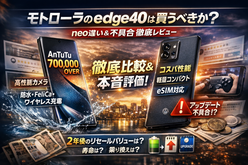 加えて、「モトローラ edge40 ケース」「edge40 neo ケース」の選び方で割れやすさを防ぐコツ、中古・じゃんぱら・買取価格を踏まえた2年後のリセールバリューまで押さえるので、「今edge40を買うのが得か、他社ミドルに流れるべきか」を現金ベースで判断できます。