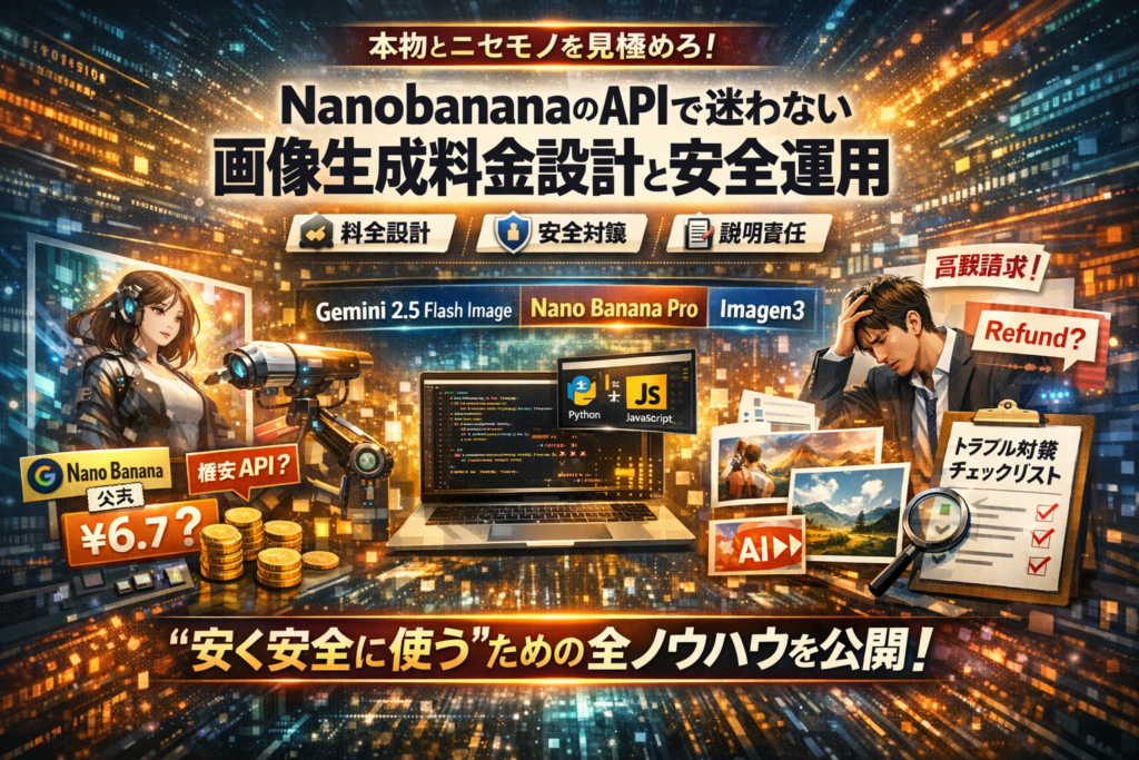 nanobanana apiを「安く安全に」使い切るか、「安いと思って高くつく」かは、この先の数ページで決まります。