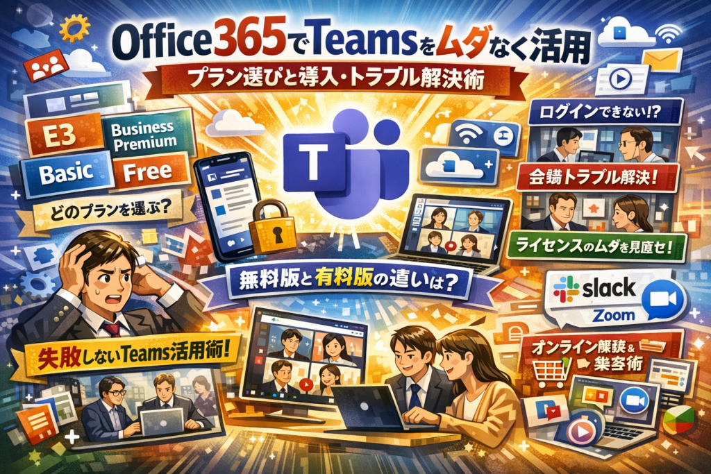 本記事では、Office 365とTeamsの関係、Business BasicやStandard、Premium、E3などのプラン選びの最適解から、Teamsのダウンロードやインストール、ログインできない・会議に参加できないといったトラブルの切り分け方までを、現場で本当に起きている失敗例を踏まえて整理します。さらに、無料版Teams運用の見えないリスク、グループチャットやチーム・チャネル設計のコツ、ZoomやSlackとの住み分け、Web集客やオンライン商談と組み合わせた活用方法まで一気に俯瞰します。この記事を読み進めれば、「誰にどのライセンスを配り、どのルールで使わせればムダが消えるか」「今日中にどの設定とチェックをすればトラブルが止まるか」を自力で判断できる状態まで到達できます。