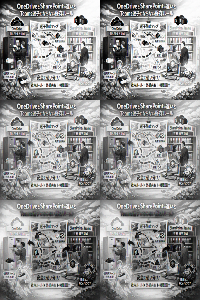 さらに、全部OneDriveや全部Teamsに寄せた結果起きる退職者問題、SharePoint→OneDriveコピー連発による最新版崩壊、SharePoint OneDrive 同期とショートカットの設計ミスでPCがパンクするケースを、実務の因果関係として解体します。