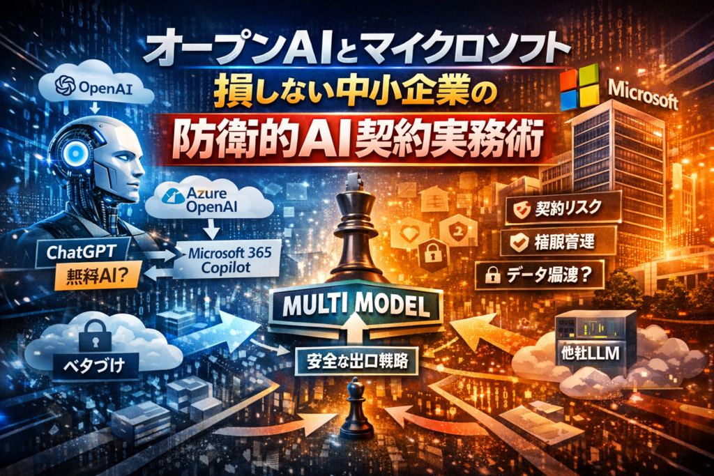 本記事では、OpenAI×Microsoftの関係を「インフラ/モデル/アプリ」の3レイヤーで整理し、出資比率や決裂報道に振り回されずに、契約・権限・ログ・出口戦略をどう設計すればよいかを、中小企業向けに具体化します。Microsoft AIスタックと他LLM(DeepSeekなど)を組み合わせるマルチモデル構成まで含め、「いつでもやめられるAI利用」の現実的なラインを示します。この数十分を投じずに判断を続けること自体が、既に損失になっている。その前提で読み進めてください。