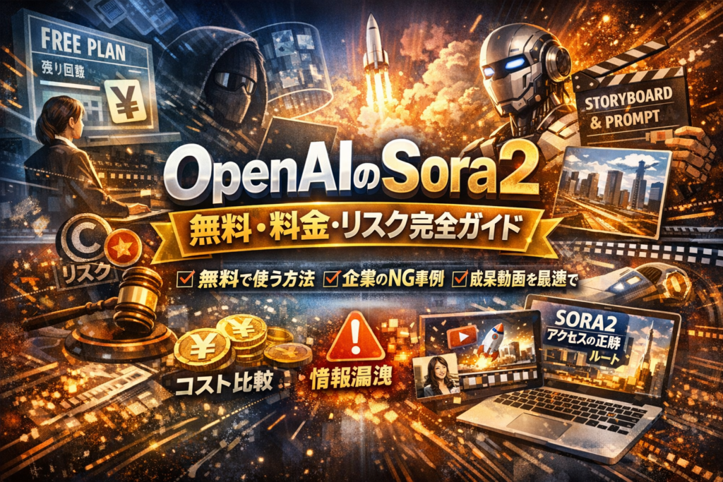 Sora2 無料プランの現実的な使い方、Sora 生成AI 料金を日本円で見たときの意思決定基準、ChatGPT PlusやSora2 Proとの損得、Sora2 アプリ(iPhone/Android/PC)とWeb版の選び方、招待コード掲示板ルートのリスク、ログインできない・「問題が発生しました」が出る典型パターンまで、実際のつまずきを前提に解説します。さらに、やってはいけない使い方(既存IP風・社員の顔・機密情報の入力など)と、Storyboard設計まで含めた現場プロセスを押さえることで、「AI動画プロジェクトが回らない」事態を避けます。